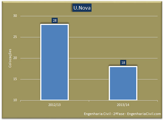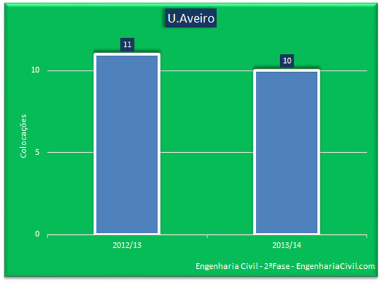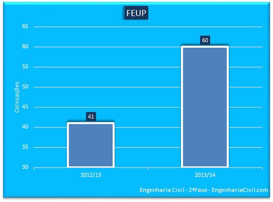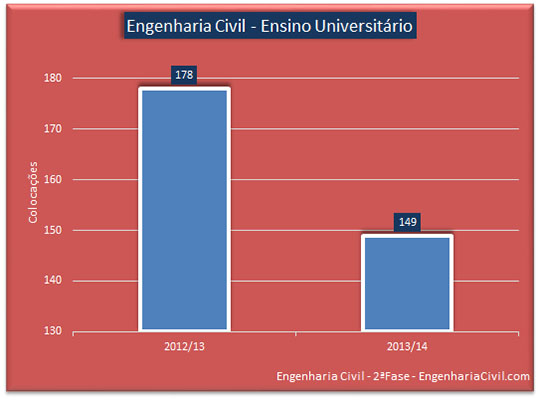 Os números da segunda fase do concurso nacional de acesso ao ensino superior público de 2013, para os Cursos de Engenharia Civil, prosseguiram a tendência descendente já verificada na primeira fase, com uma queda significativa, de cerca de 24%, no número de colocados relativamente a 2012. A única exceção no Ensino Universitário foi o curso de Engenharia Civil da Faculdade de Engenharia da Universidade do Porto (FEUP), com uma subida de 31% no número de colocados, apesar da queda de 32% verificada na primeira fase de colocações de 2013 no Ensino Superior.